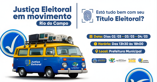A Justiça Eleitoral de Santa Catarina inicia nesta segunda-feira, dia 2 de março, o atendimento volante no município de Rio do Campo. A iniciativa busca facilitar o acesso da população aos serviços eleitorais e antecipar as ações preparatórias para as Eleições de 2026.