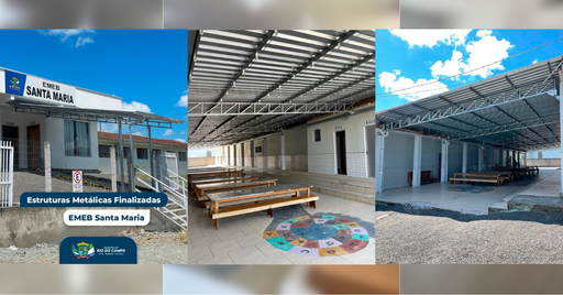 A EMEB Santa Maria está recebendo os últimos ajustes em sua infraestrutura. A obra de instalação de uma estrutura metálica moderna encontra-se em fase de finalização. O objetivo é proporcionar mais conforto, segurança e funcionalidade para toda a comunidade escolar neste início de ano letivo.